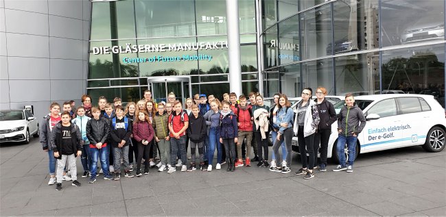 Am 2.Tag ging es nach dem Frühstück zur Gläsernen Manufaktur. Dort wurde uns in einer Führung gezeigt, wie die Elektroautos hergestellt werden und wie die Zukunft auf unseren Straßen aussehen soll.